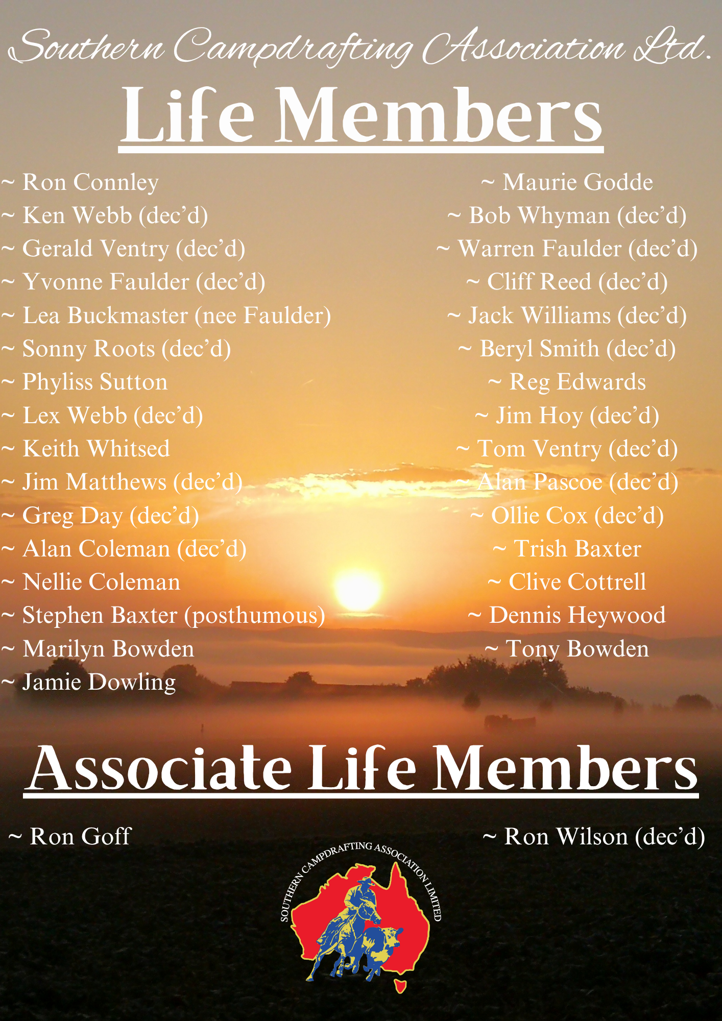 The Southern Campdrafting Association has never lost sight of its main aim which is to provide Personal Accident Insurance for all its members at a very affordable cost of $165 all-inclusive and also provides Insurance for all SCA Clubs in this unique Australian Horse Sport of Campdrafting, where all generations of the family can participate and enjoy. Never forgetting that our members and clubs are the SCA.